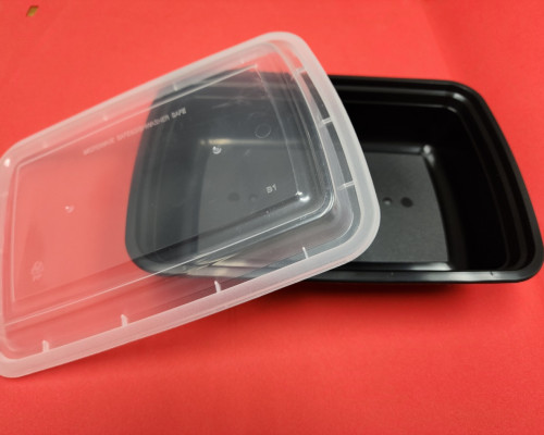 38oz Rectangle Container Coming as a combo, this black container includes a clear, tight-fitt..